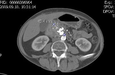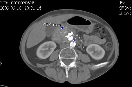 CT-n Wirsung tágulat, krónikus pancreatitisre utaló pancreasfej kiszélesedés és intraparenchymalis calcificatio látszik. Intrahepaticus epeúti tágulat nem látszik.