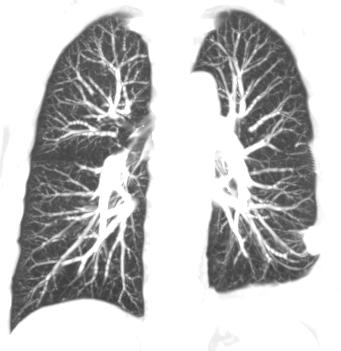 - a „comet tail” of bronchovascular structures going into the mass (Comet tail sign).