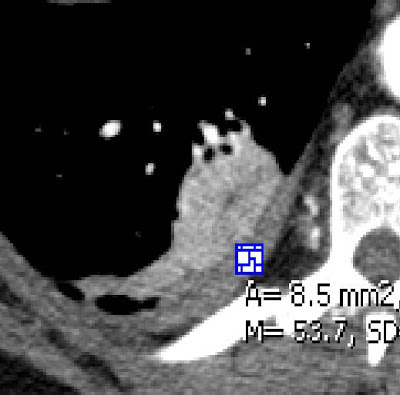 - Comet tail on CT: vessels and bronchi converge upon and appear to swirl around mass
