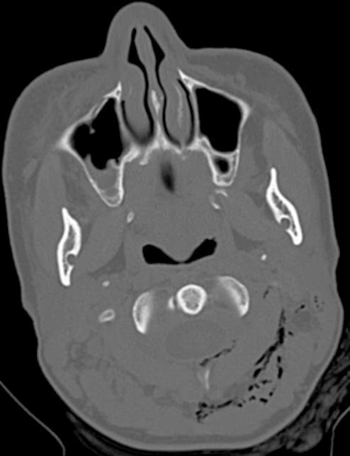 | gas bubbles in the soft tissues of the neck and the vertebral canal (left side) |